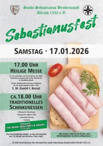 Die Allrather Sankt Sebastianus Bruderschaft von 1533 hat wieder einen neuen König. Beim traditionellen Patronatsfest, dem Sebastianusfest, konnte wieder einmal ein junger König in sein Amt eingeführt werden. Auftakt bildete, wie immer, die traditionsreiche Krönungsmesse in der sehr gut besuchten Pfarrkirche ‚Sankt Matthäus‘ Allrath. Die sehr schön gestaltete Krönungsmesse mit der musikalischen Rahmung des Pfarrcäcilienchors Allrath und zelebriert von Pfarrer Chr. Reck, war der erste Höhepunkt der alljährlichen Feierlichkeiten zum Patronatstag der Bruderschaft. In seiner Predigt ging Pfarrer Reck auf das Leben und Wirken, sowie auf die Bedeutung des Namenspatrons der Bruderschaft bis in die heutige Zeit ein. In eindrucksvollen Worten brachte er den Namenspatron allen Anwesenden sehr nahe. Im Rahmen der Krönungsfeierlichkeiten dankte er besonders der scheidenden Majestät Rebecca I. Kampf für ihre Amtsübernahme und das Engagement, das sie während ihrer Amtszeit geleistet habe. Nach der Übergabe der Königsinsignien, dem Treugelöbnis auf die Bruderschaft und der Segnung der neuen Majestät, wurde nun durch den 1. Brudermeister Harald Titzer die neue Majestät Daniel I. Kessel den Anwesenden präsentiert, die ihn mit herzlichem Applaus begrüßten.