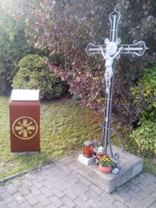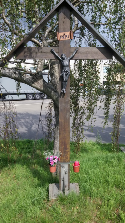 Das hier beschriebene Wegekreuz, welches seit vielen Jahren durch die Sankt Sebastianus Bruderschaft Allrath 1533 e.V. gepflegt wird, steht auf Bundesgelände am Rand der Bundesstraße 59 (B 59) auf der rechten Seite in Fahrtrichtung Grevenbroich, in Höhe des Parkplatzes der Fa. HYDRO AG (früher VAW / RHEBAG).