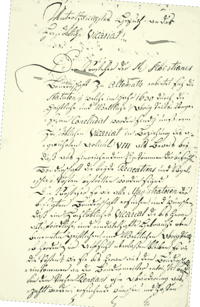 In dem Dokument vom 04.02.1754 werden seitens des damaligen Pastors Johann Peter Steprath die Missbräuche –excesse-, wie z.B. das Brechen des ‚Schweigegelübde‘ während des Essens oder der übermäßige Genuss von Bier in der Sankt Sebastianus Bruderschaft Allrath 1533 e.V. beklagt. Pastor Johann Peter Steprath verweist in diesem Schreiben auch besonders auf die am 23.05.1630 von Joan Heinrich Schall von Vehl als ‚ambtmann‘ aufgestellt und niedergeschriebenen Statuten der Bruderschaft, in der die Regeln für das Zusammenleben der Brüder und Schwestern niedergeschrieben sei. Weiter befürchtet er, dass das religiös geprägte Zusammenleben in der Bruderschaft schweren Schaden nehme, wenn der Brudermeister diesen ‚sündigen excessen‘ nicht umgehend Einhalt gebieten werde.