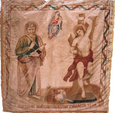 Die Sankt Sebastianus Bruderschaft konnte im Jahre 1880 eine neue große und aufwendig gestaltete Schwenkfahne erwerben. Diese Schwenkfahne ist beidseitig bemalt und zeigt rechts den Namenspatron der Bruderschaft, den hl. Sebastianus als Märtyrer, und links den Evangelisten und Pfarrpatron, den hl. Matthäus.