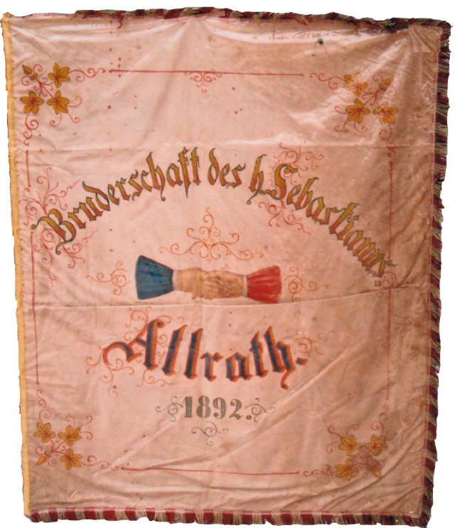 Die Sankt Sebastianus Bruderschaft Allrath 1533 e.V. konnte im Jahre 1892 eine weitere große und aufwendig gestaltete Schwenkfahne erwerben. An dieser Stelle sei vermerkt, das nicht bekannt ist, ob und in welchem Umfang die Bruderschaften schon vor diesem Zeitpunkt Fahnen oder Standarten ihr Eigentum nennen konnten. Zwar ist zu vermuten, dass es vorher schon Fahnen, Banner oder Standarten im Besitze des Vereins gegeben haben könnte, aber hierzu liegen keine Belege vor.