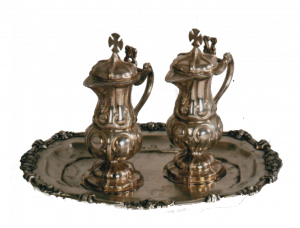 Das dargestellte Königssilber von 1843 ist vermutlich eine Nachbildung der ursprünglichen Königskette aus dem Jahre 1756. Diese Kette (Vogelskette) wurde durch den Kölner Goldschmied Constantinus Gehlen anfertigt, wie der Text der noch vorliegenden Rechnung bestätigt (in rheinischem Deutsch):